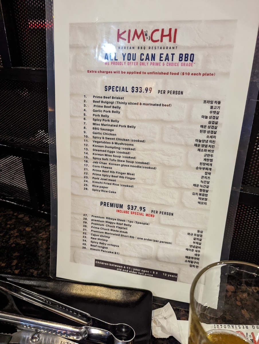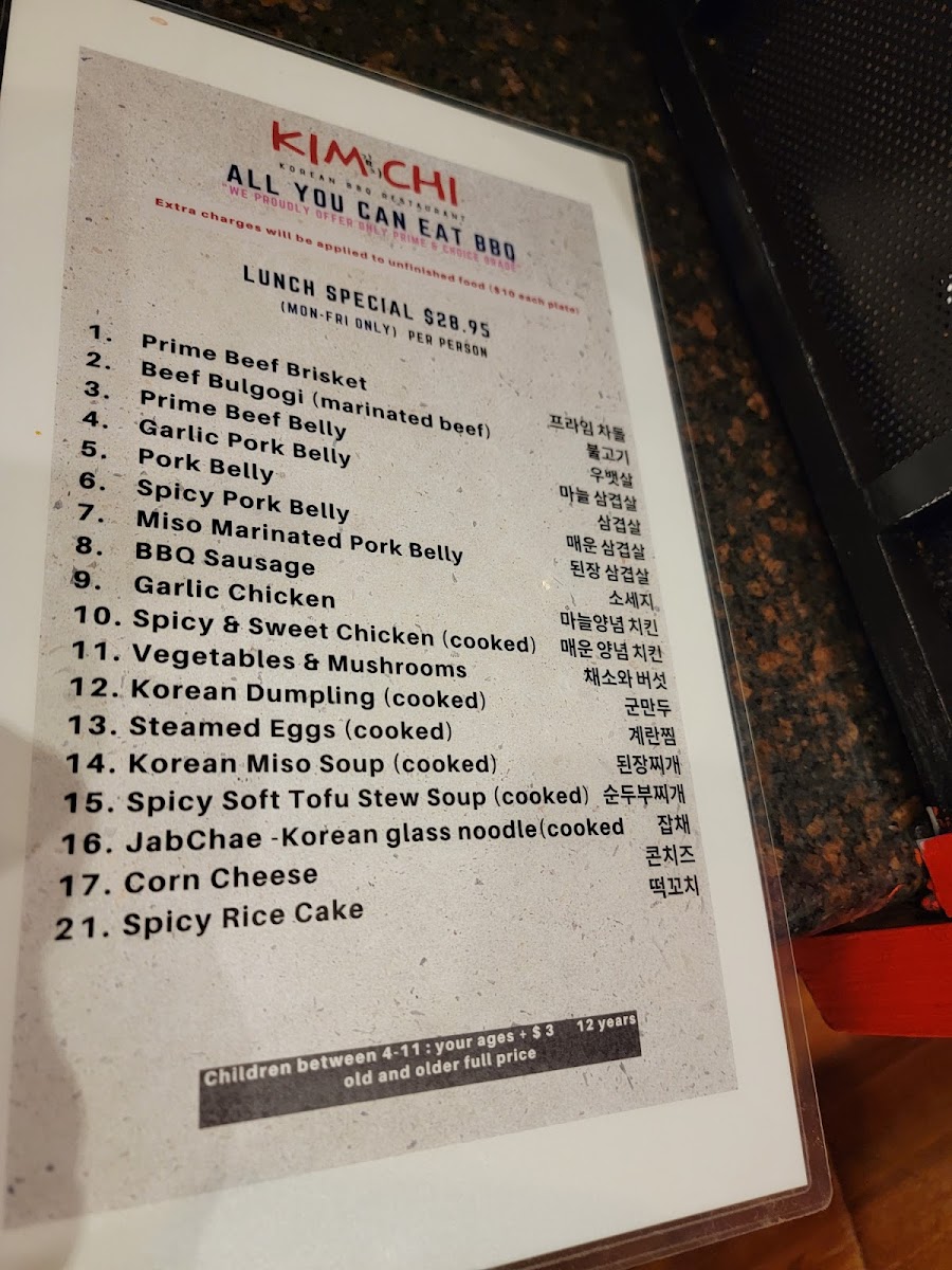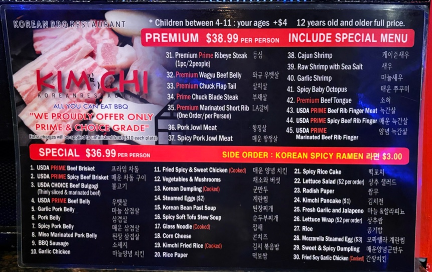 Kimchi Korean BBQ Menu